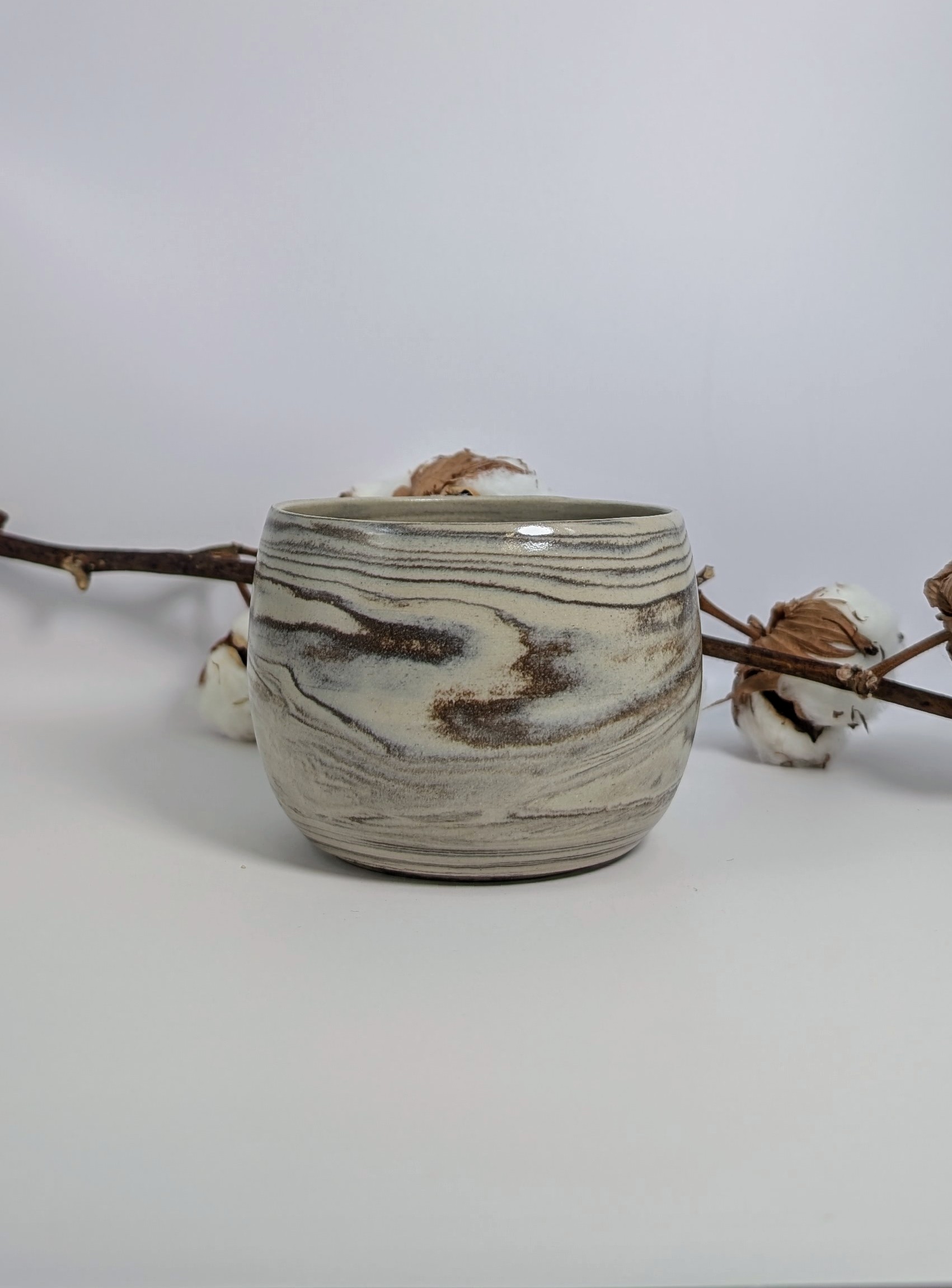 Toutes les pièces de la collection TIERRA sont entièrement réalisées à la main et émaillées afin de faire ressortir les nuances des trois terres à grès utilisées. Grâce à la technique japonaise du neriage les terres se mêlent de manière aléatoire, sous mes mains lors du tournage, laissant apparaitre un motif unique.