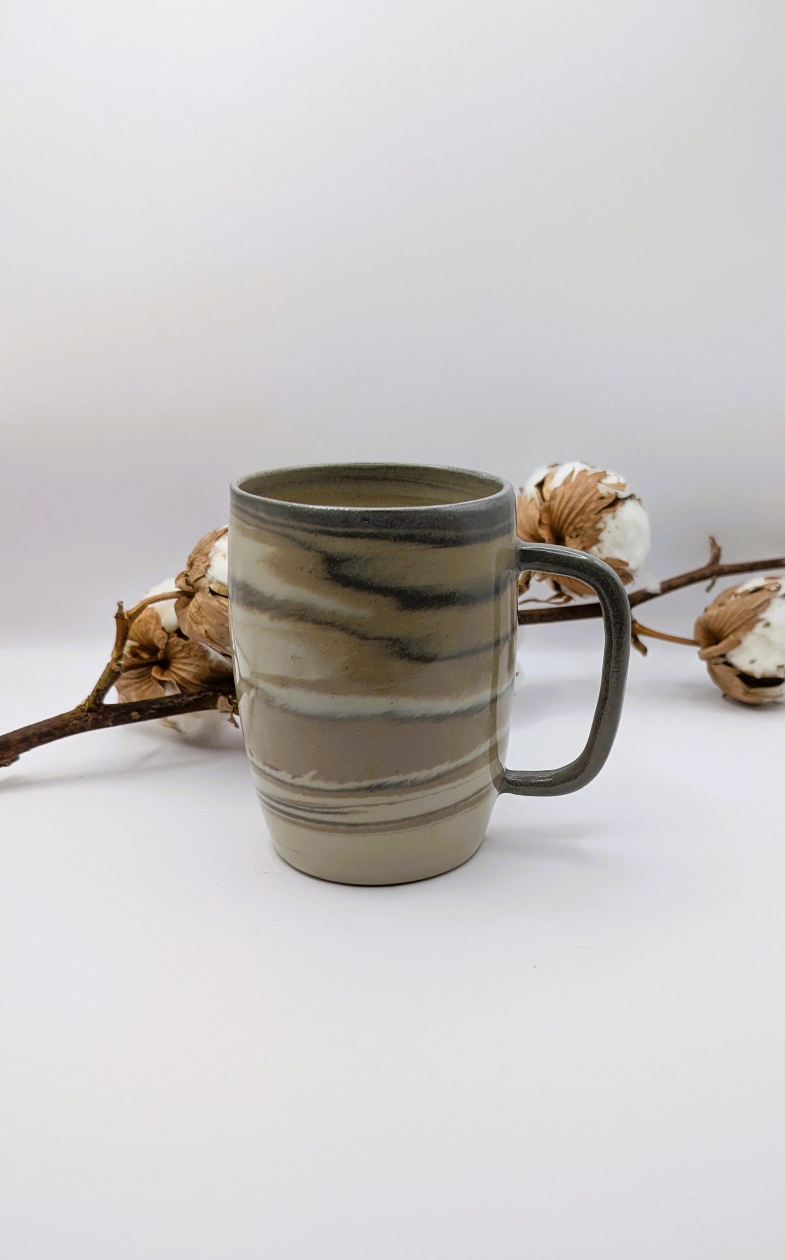Toutes les pièces de la collection TIERRA sont entièrement réalisées à la main et émaillées afin de faire ressortir les nuances des trois terres à grès utilisées. Grâce à la technique japonaise du neriage les terres se mêlent de manière aléatoire, sous mes mains lors du tournage, laissant apparaitre un motif unique.