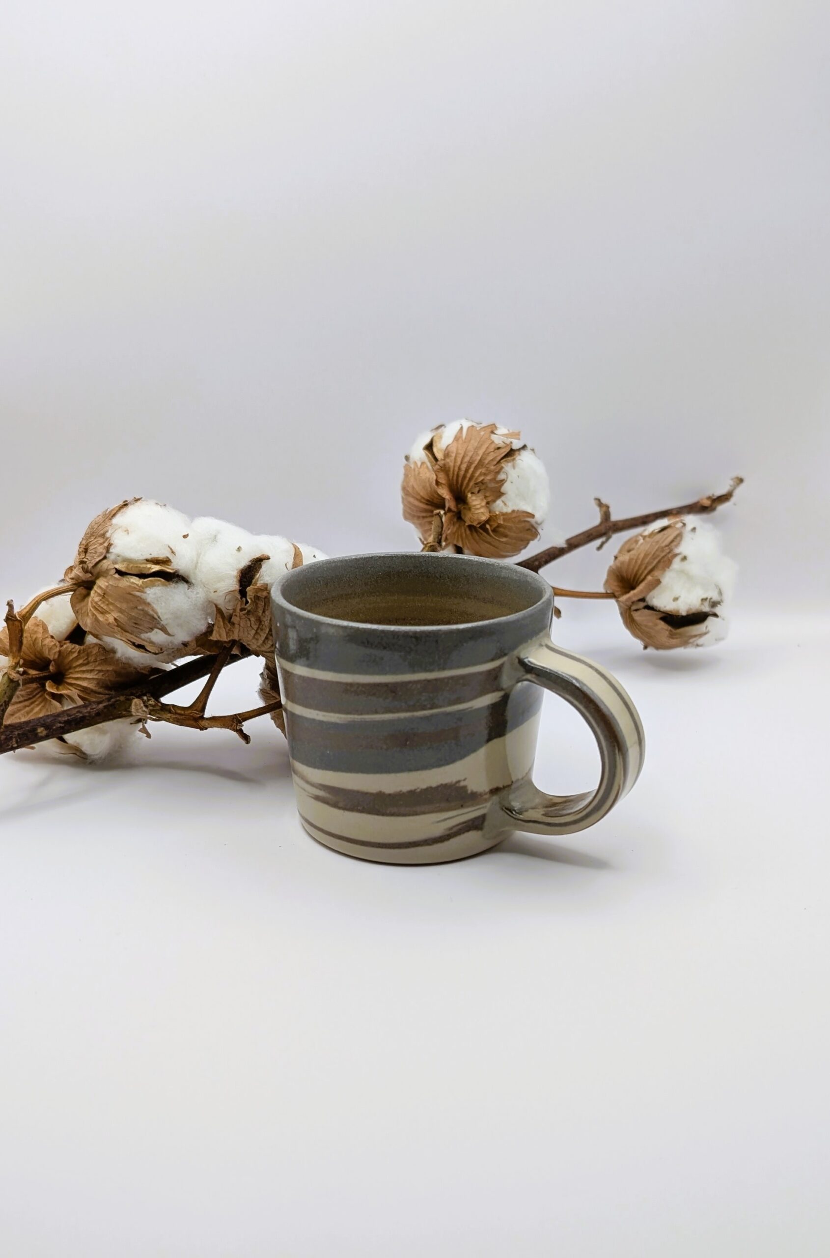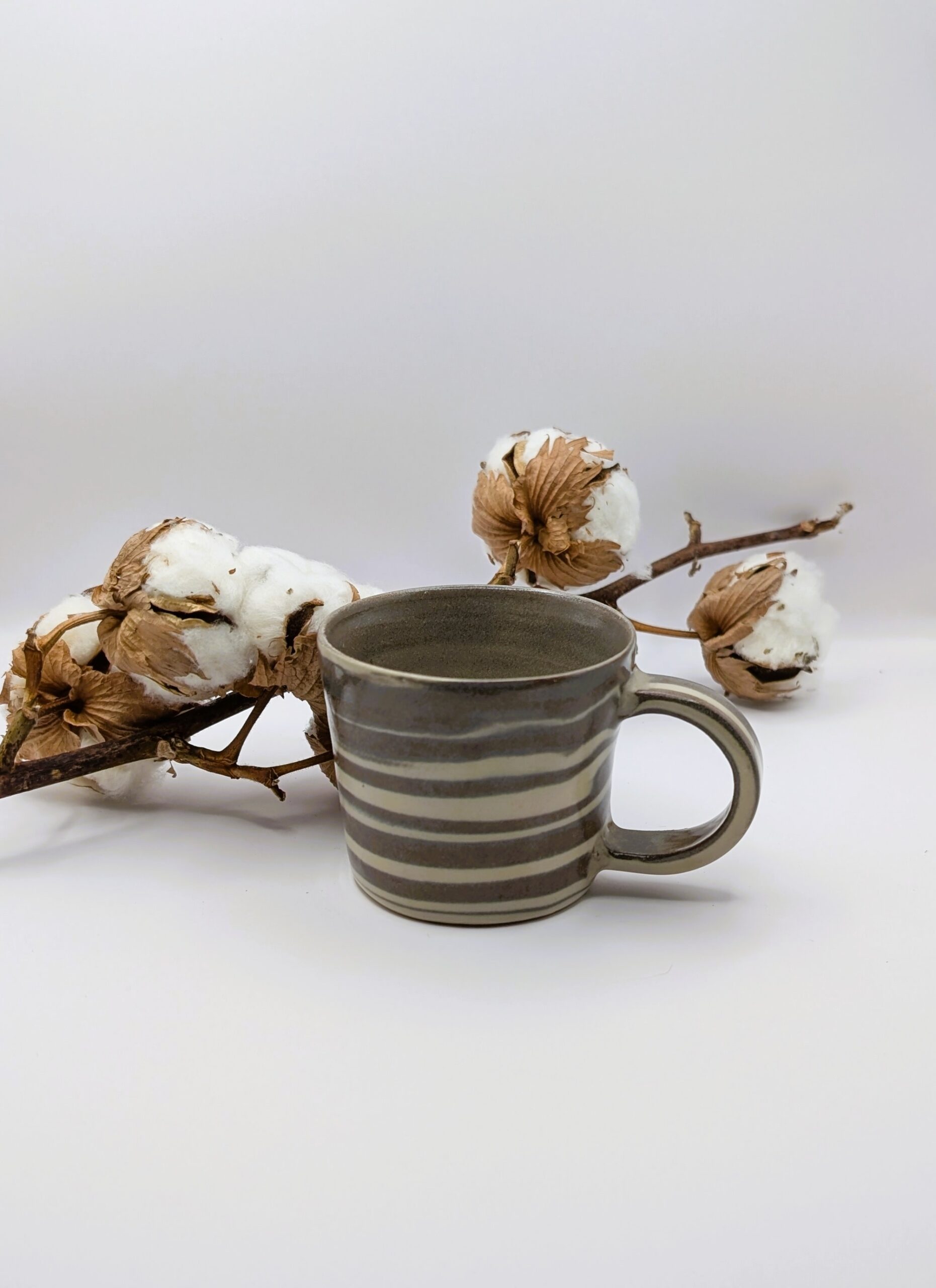 Toutes les pièces de la collection TIERRA sont entièrement réalisées à la main et émaillées afin de faire ressortir les nuances des trois terres à grès utilisées. Grâce à la technique japonaise du neriage les terres se mêlent de manière aléatoire, sous mes mains lors du tournage, laissant apparaitre un motif unique.